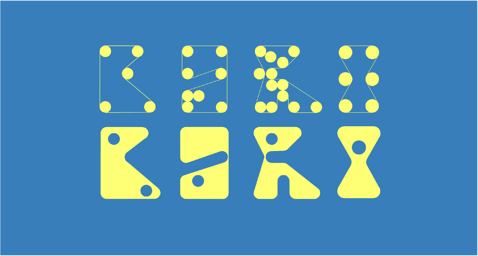 Our next iterations were centered around making the idea clearer and more human. Still, we weren’t ready to give up with the dots and came up with a system to illustrate the typography.
