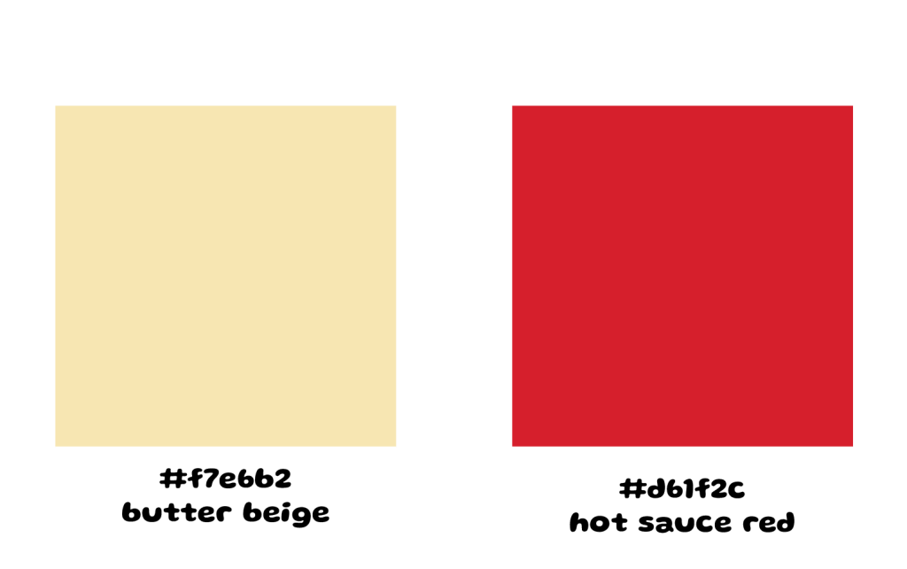 The color palette is chosen based on a combination of food and drinks. While the choices could be infinite, I filtered them down to two main colors based upon David’s heritage: Vietnam and Canada. The red is a callback to where he was born, Canada, while also signifying the red of hot sauce, one of the first things we bonded over. The beige is a reference to the Vietnamese flag’s yellow, yet more buttery and delectable.