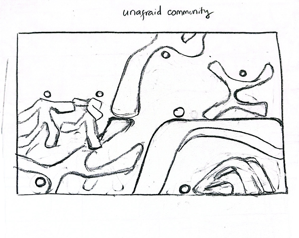 These ideas have their own flaws, which is why they didn’t work. The community feel was there but it wasn’t strong enough to make a point. We hit our strides though, when I sketched this out.